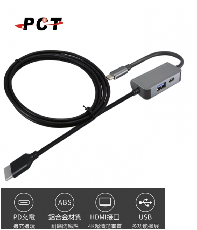 【PCT】USB-C 3 in 1 to HDMI 2M Male Cable/ USB3.0 / USB PD(UHC103-200)