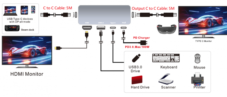 | 功能 | Type-C 5 Port Docking/ One Out Type C Full Function Extender Port |