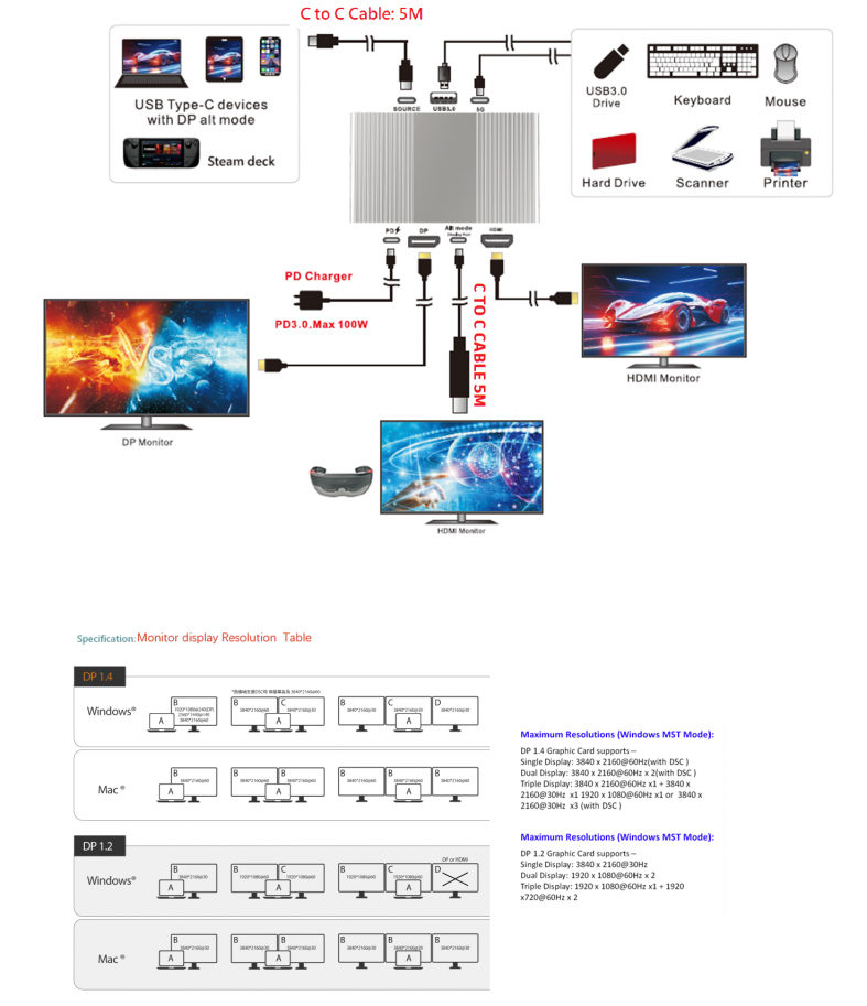 ■Type C x1 Full Function(Display Max 4K@60Hz/USB2.0/3.0) C to C cable/5M