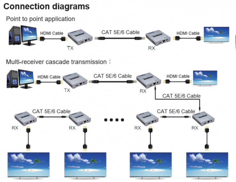 - 【PCT】HDMI2.0 60M Extender Cascade Connection(HE120T/R)