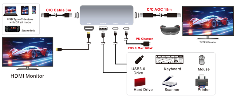 ● TYPE C Full Function (Display Max 4K@60Hz/5Gbps/USB2.0/3.0/PD)