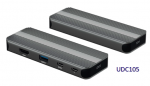UDC105 HDMI 5合1集線器,主要特色是有一個輸出USB-C 口,可同時傳輸DP影像與USB GEN1數據 的配置,另外同時有還有USB-A與USB-C 端口可免去「選A還是選C」的煩惱,提供5Gbps高速傳輸,最多可同時連接三個USB裝置,無論鍵盤滑鼠、隨身碟,或是最新USB-C裝置,都能靈活使用。HDMI單埠可支援4K/60Hz高畫質輸出,HDMI與TYPE-C ALT DP MODE 可同時輸出雙顯示4K/60Hz(MST) 帶來清晰流暢的視覺體驗。支援即插即用,免安裝驅動程式。小巧尺寸,輕巧好攜,精緻外型高質感,是行動工作者與高效玩家的理想搭檔。