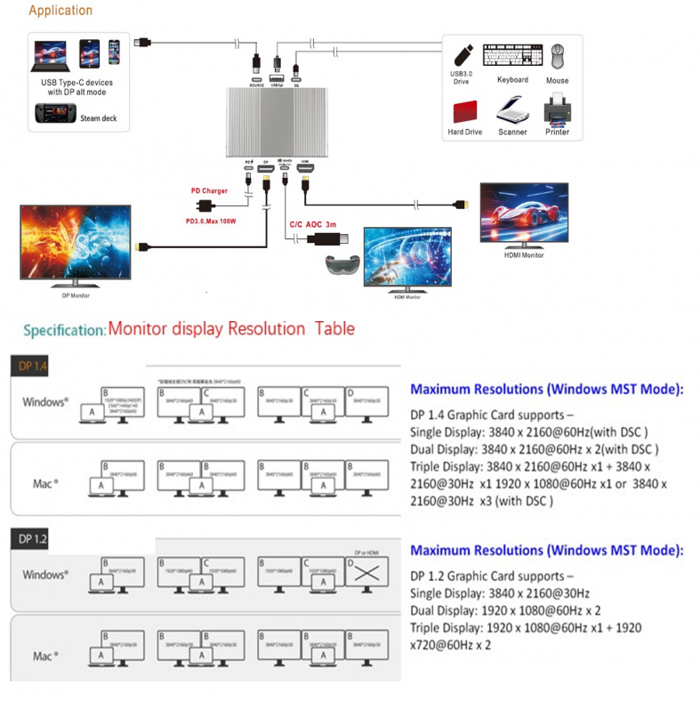 ■Type C×1(Connect to host)■Type C MFDP(Display Max 4K@60Hz/USB2.0/3.0) C to C cable/5M